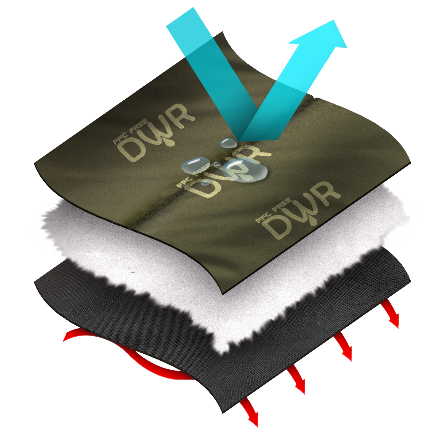 Our search for a responsible down product led us to Primaloft® Black Eco®. This is a new fill that is 100% synthetic, with strong warmth to weight and packability, great performance in wet weather and in breathability. 60% of this fill is made from post-consumer recycled material which is great for the environment and it boasts the maximum warmth to weight for this category.