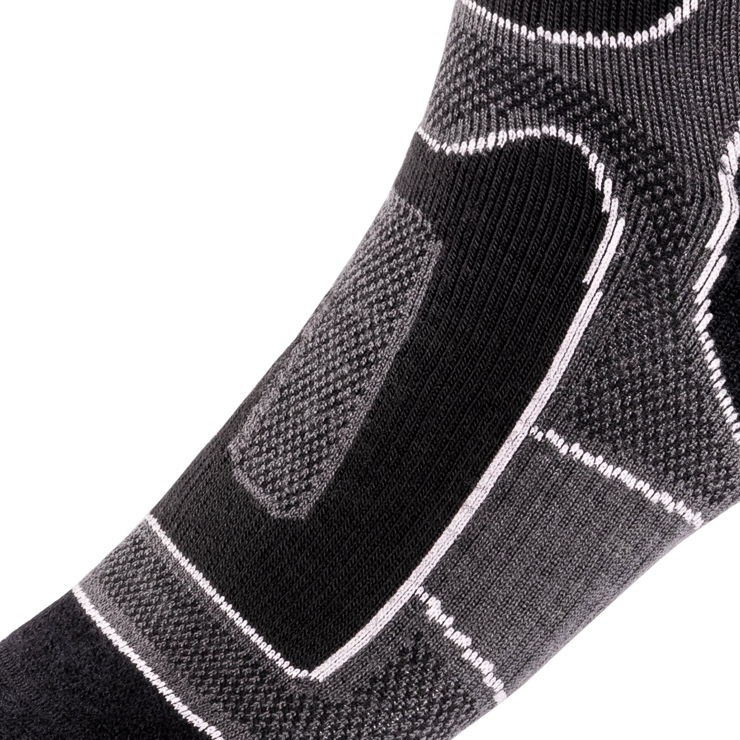 The Peak's design is shaped to the contours of your lower leg, ankle, and foot. This means the sock locks in place with minimal bunching and movement, resulting in maximum comfort and greatly reduced room for blistering. The foot-mapped design places padding in the high-contact areas and thinner weaves in between for contour and breathability.