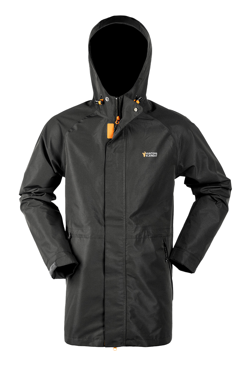 The strong, silent type. A tough, quiet, herringbone nylon rainwear series for farm-to-hunt versatility.