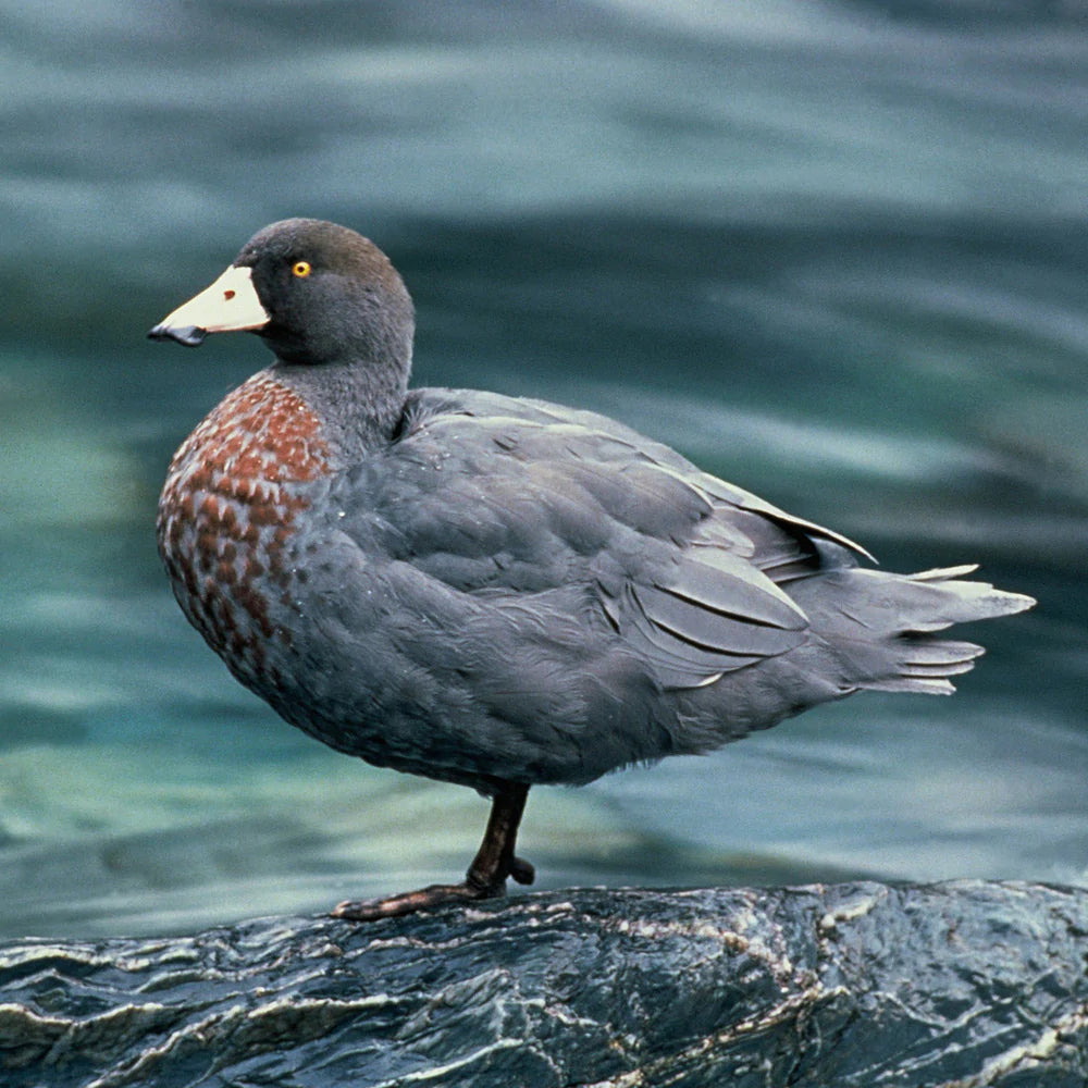You might recognise this little guy from the New Zealand $10 note. As one of our rarest birds, the Whio, or Blue Duck, needs our help to continue surfing our white-water rivers. These unique birds are camouflaged for this unique environment and have a lip on their bill which allows them to forage for insects amongst rocks. As they need fresh water to be able to establish a home where their food thrives, they are a great indicator of the health of the water.