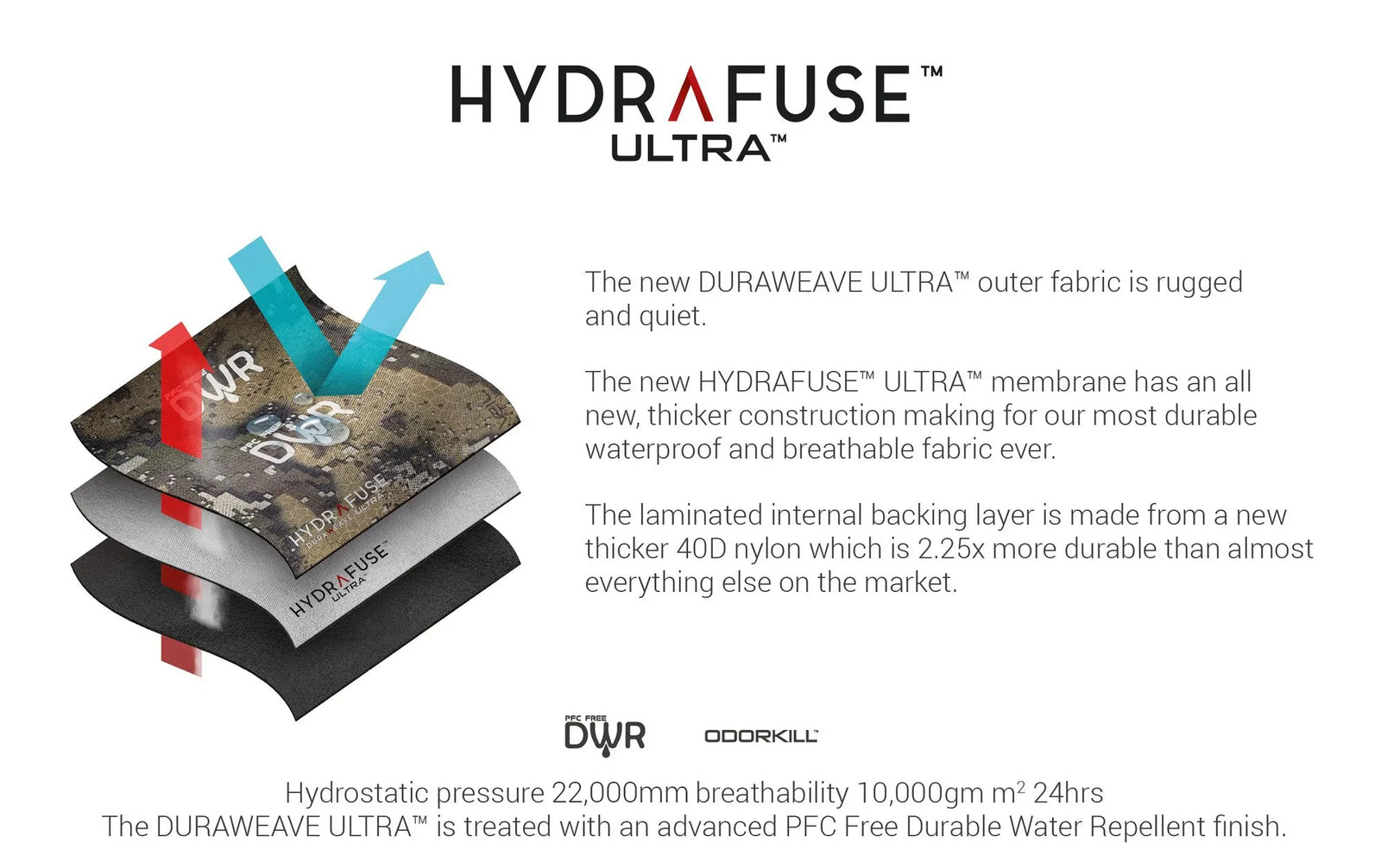 The Odyssey V2 Range is the most technical we have ever produced despite it's simple appearance. We've used only the toughest and lightest materials available today and tested them to brink. Check out the specs built in to the Odyssey Jacket V2 below.