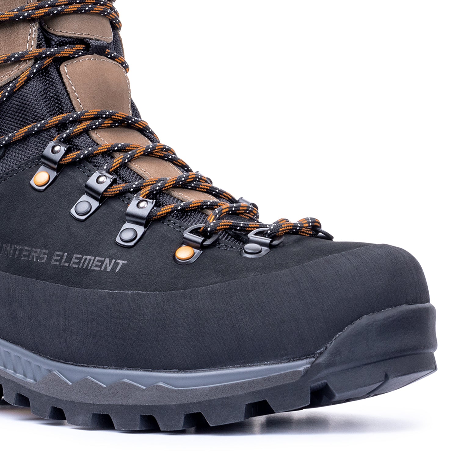The Element is the ultimate tough, heavy-duty, day-in-day-out hunting boot. The high ankle and new lace-locking system give your foot complete support. The firm shank and full rand make it bulletproof and stable in the rockiest country.